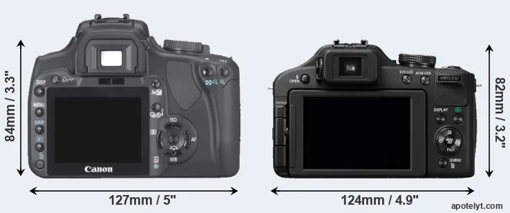 | Body Specs | Canon 400D | Panasonic FZ150 |