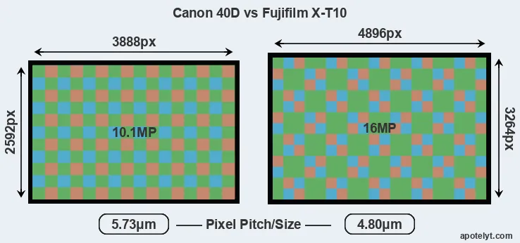 | Sensor Specs | Canon 40D | Fujifilm X-T10 |