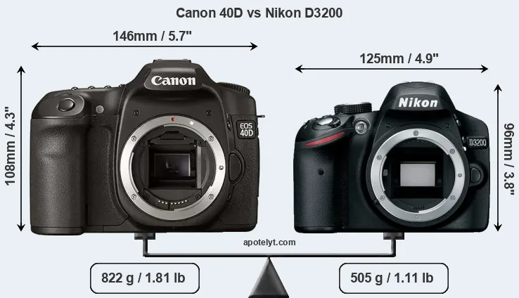 | Body Specs | Canon 40D | Nikon D3200 |