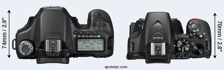 | 16. | Nikon D5600 | 124 mm | 97 mm | 70 mm | 465 g | 970 | n | Nov 2016 | US$ 699 | ebay.com | |