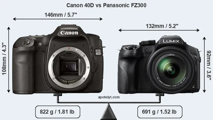 | Body Specs | Canon 40D | Panasonic FZ300 |