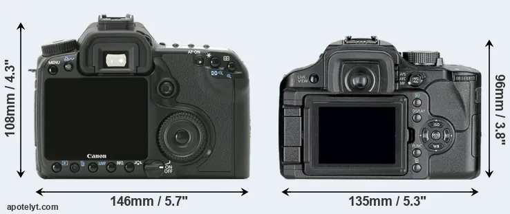 | 11. | Canon XTi | 127 mm | 84 mm | 65 mm | 556 g | 370 | n | Aug 2006 | US$ 799 | ebay.com | |