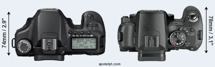 | 7. | Canon 60D | 145 mm | 106 mm | 79 mm | 755 g | 1100 | Y | Aug 2010 | US$ 1 399 | ebay.com | |