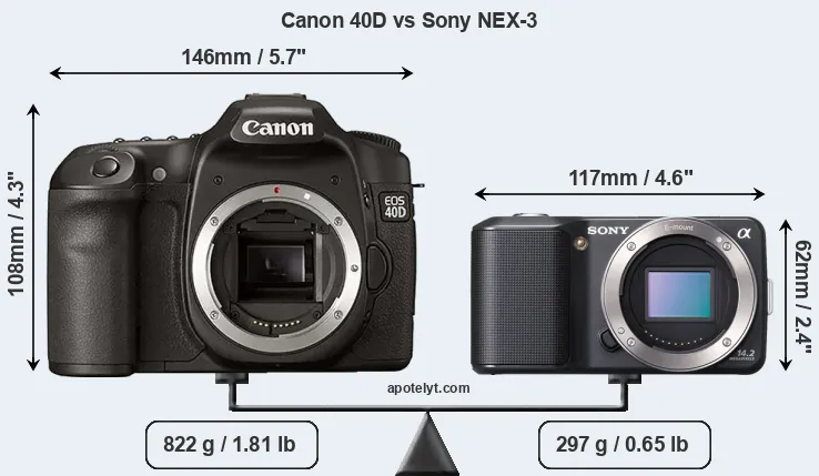 | Body Specs | Canon 40D | Sony NEX-3 |