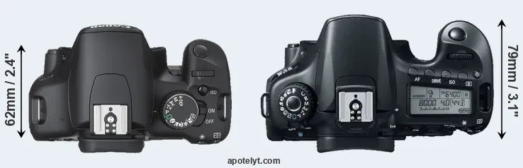 | 6. | Canon 70D | 139 mm | 104 mm | 79 mm | 755 g | 920 | Y | Jul 2013 | US$ 1 199 | ebay.com | |