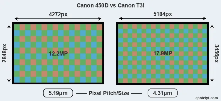 | Sensor Specs | Canon 450D | Canon T3i |