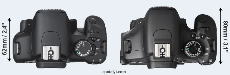 | 6. | Canon 750D | 132 mm | 101 mm | 78 mm | 555 g | 440 | n | Feb 2015 | US$ 749 | ebay.com | |