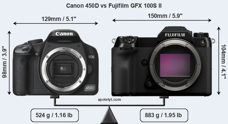 | Body Specs | Canon 450D | Fujifilm GFX 100S II |