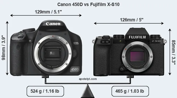 | Body Specs | Canon 450D | Fujifilm X-S10 |