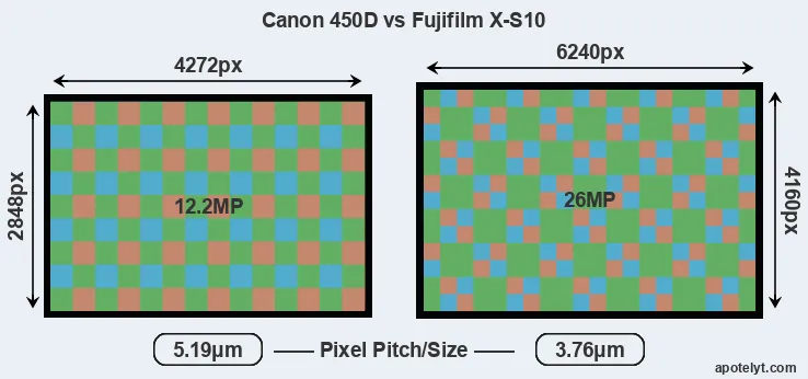 | Sensor Specs | Canon 450D | Fujifilm X-S10 |