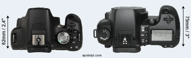 | 7. | Canon 600D | 133 mm | 100 mm | 80 mm | 570 g | 440 | n | Feb 2011 | US$ 599 | ebay.com | |