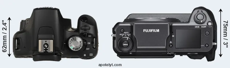 | Body Specs | Canon 500D | Fujifilm GFX 100 |
