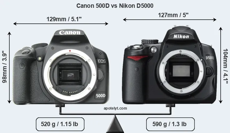 | Body Specs | Canon 500D | Nikon D5000 |