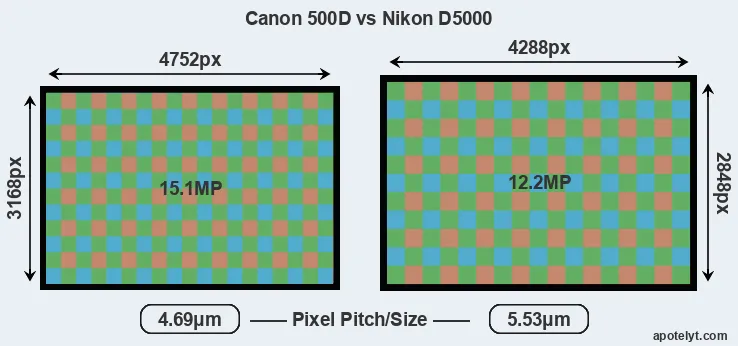 | Sensor Specs | Canon 500D | Nikon D5000 |