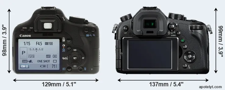 | Body Specs | Canon 500D | Panasonic FZ1000 |