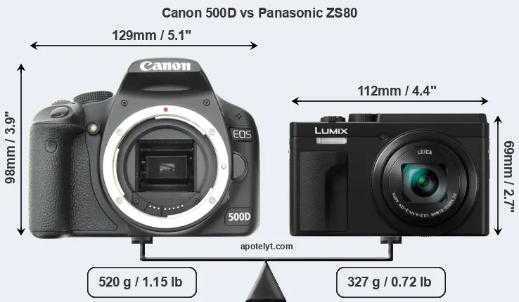 | Body Specs | Canon 500D | Panasonic ZS80 |