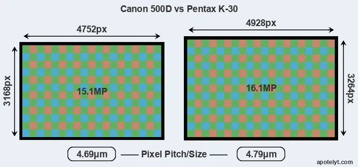 | Sensor Specs | Canon 500D | Pentax K-30 |