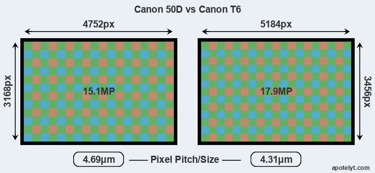 | Sensor Specs | Canon 50D | Canon T6 |