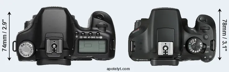 | 10. | Canon 77D | 131 mm | 100 mm | 76 mm | 540 g | 600 | n | Feb 2017 | US$ 899 | ebay.com | |