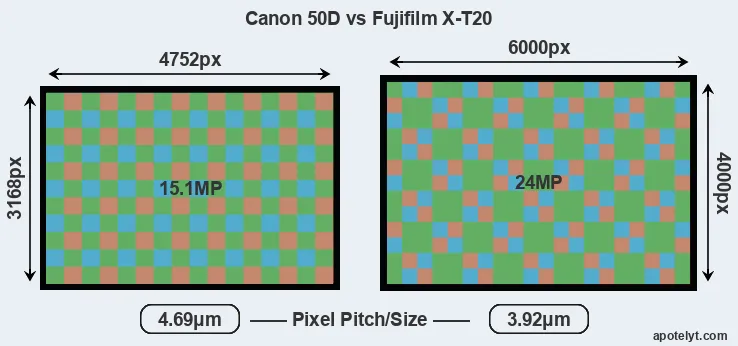 | Sensor Specs | Canon 50D | Fujifilm X-T20 |