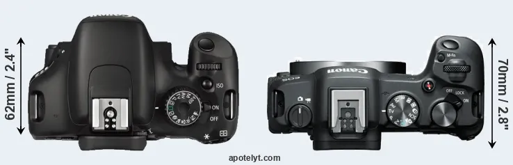 | 15. | Canon RP | 133 mm | 85 mm | 70 mm | 485 g | 250 | n | Feb 2019 | US$ 1 299 | amazon.com | |