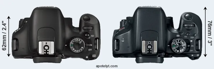 | 14. | Canon T6i | 132 mm | 101 mm | 78 mm | 555 g | 440 | n | Feb 2015 | US$ 749 | ebay.com | |