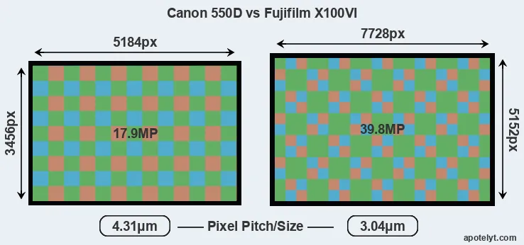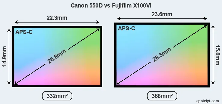 Size Canon 550D vs Fujifilm X100VI