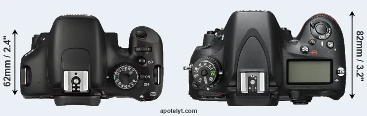 | 9. | Canon 760D | 132 mm | 101 mm | 78 mm | 565 g | 440 | n | Feb 2015 | US$ 649 | ebay.com | |