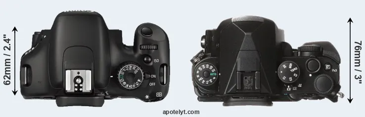 Size Canon 550D vs Pentax KP