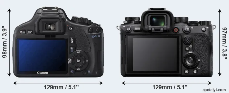 Going beyond this snapshot of core features and characteristics, what are the differences between the Canon EOS 550D and the Sony A1? Which one should you buy? Read on to find out how these two cameras compare with respect to their body size, their imaging sensors, their shooting features, their input-output connections, and their reception by expert reviewers.