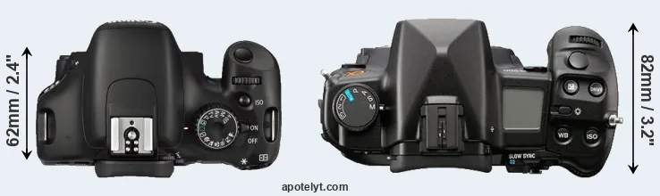 | 6. | Canon 700D | 133 mm | 100 mm | 79 mm | 580 g | 440 | n | Mar 2013 | US$ 649 | ebay.com | |