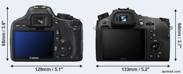 | Body Specs | Canon 550D | Sony RX10 IV |