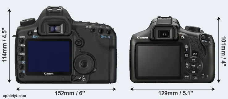 The side-by-side display below illustrates the physical size and weight of the Canon 5D Mark II and the Canon T6. The two cameras are presented according to their relative size. Three consecutive perspectives from the front, the top, and the back are available. All width, height and depth measures are rounded to the nearest millimeter.