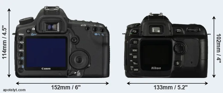 | 16. | Nikon D70s | 140 mm | 111 mm | 78 mm | 679 g | 500 | n | Apr 2005 | US$ 899 | ebay.com | |