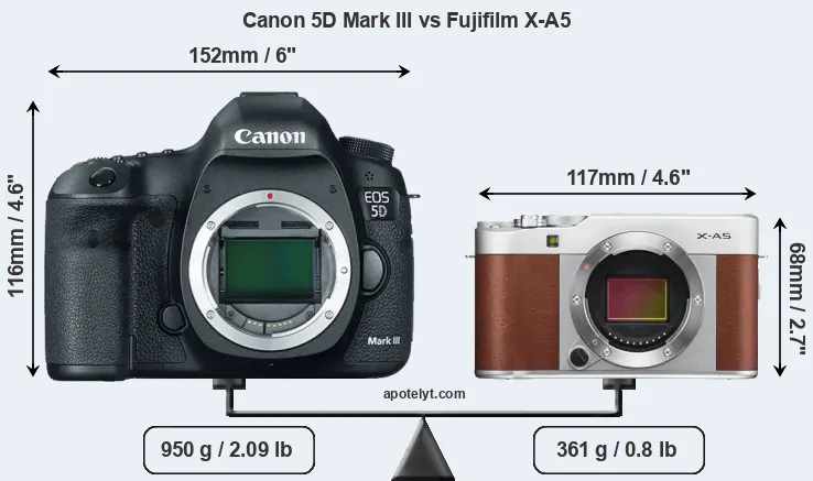 | Body Specs | Canon 5D Mark III | Fujifilm X-A5 |