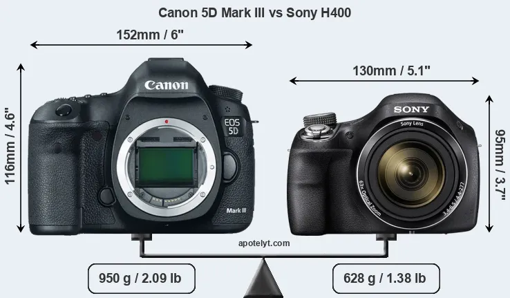 | Body Specs | Canon 5D Mark III | Sony H400 |