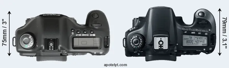 | 5. | Canon 1Ds Mark II | 156 mm | 158 mm | 80 mm | 1215 g | 1200 | Y | Sep 2004 | US$ 7 999 | ebay.com | |