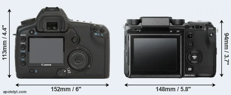 | Body Specs | Canon 5D | Fujifilm GFX 50S |