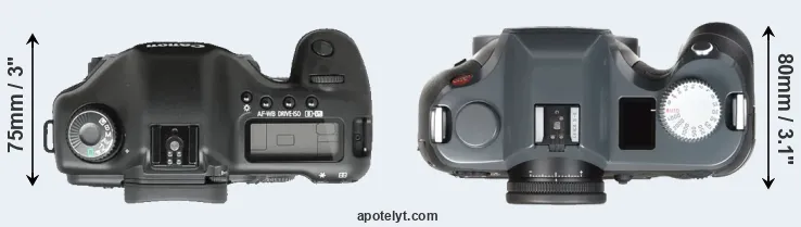 | 5. | Canon 1Ds Mark II | 156 mm | 158 mm | 80 mm | 1215 g | 1200 | Y | Sep 2004 | US$ 7 999 | ebay.com | |