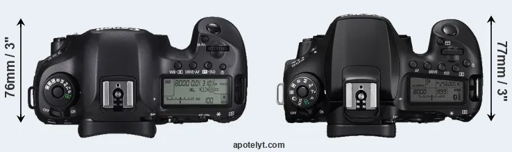 | 7. | Canon 5D Mark IV | 151 mm | 116 mm | 76 mm | 890 g | 900 | Y | Aug 2016 | US$ 3 499 | amazon.com | |