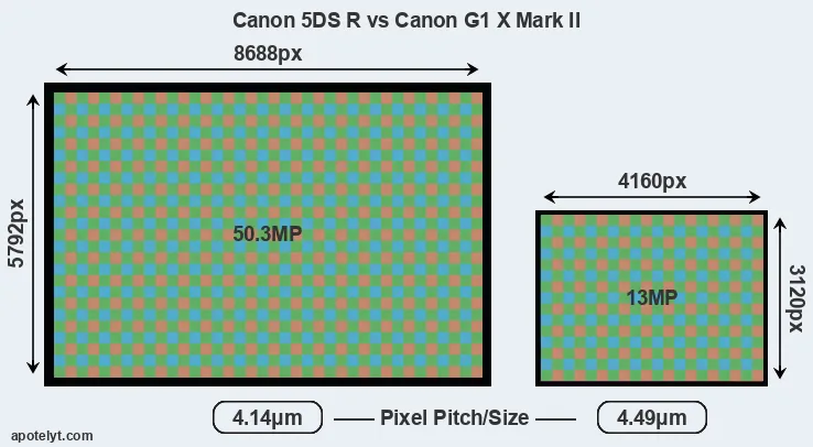 | Sensor Specs | Canon 5DS R | Canon G1 X Mark II |