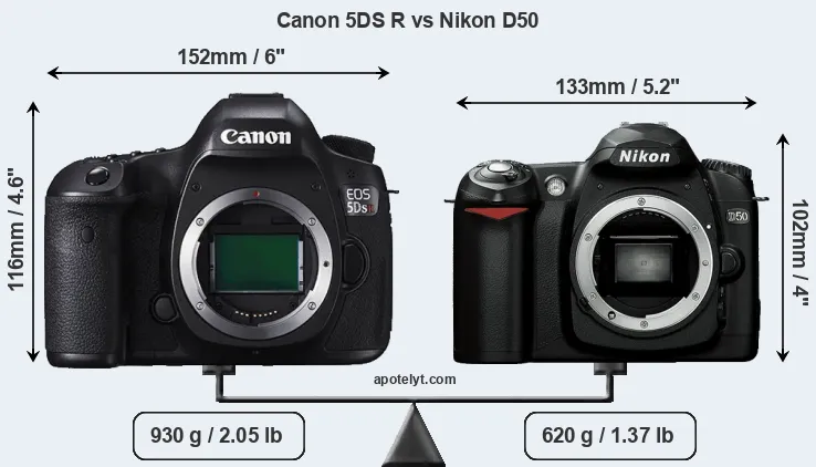 | Body Specs | Canon 5DS R | Nikon D50 |