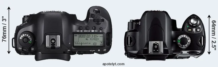 | 5. | Canon 5D Mark III | 152 mm | 116 mm | 76 mm | 950 g | 950 | Y | Mar 2012 | US$ 3 499 | ebay.com | |