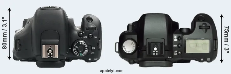 | 1. | Canon 600D | 133 mm | 100 mm | 80 mm | 570 g | 440 | n | Feb 2011 | US$ 599 | ebay.com | |