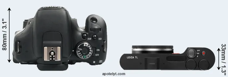 Going beyond this snapshot of core features and characteristics, what are the differences between the Canon EOS 600D and the Leica TL? Which one should you buy? Read on to find out how these two cameras compare with respect to their body size, their imaging sensors, their shooting features, their input-output connections, and their reception by expert reviewers.