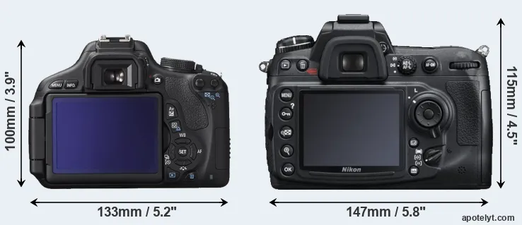 Going beyond this snapshot of core features and characteristics, what are the differences between the Canon EOS 600D and the Nikon D300S? Which one should you buy? Read on to find out how these two cameras compare with respect to their body size, their imaging sensors, their shooting features, their input-output connections, and their reception by expert reviewers.