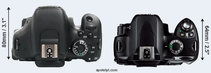 | 1. | Canon 600D | 133 mm | 100 mm | 80 mm | 570 g | 440 | n | Feb 2011 | US$ 599 | ebay.com | |