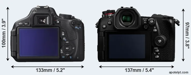 | Body Specs | Canon 600D | Panasonic G9 |