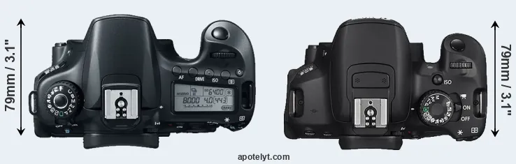 | 8. | Canon 80D | 139 mm | 105 mm | 79 mm | 730 g | 960 | Y | Feb 2016 | US$ 1 199 | ebay.com | |