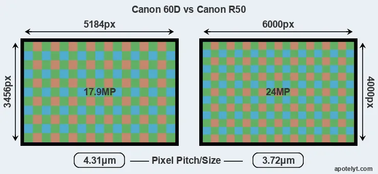 | Sensor Specs | Canon 60D | Canon R50 |